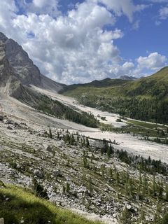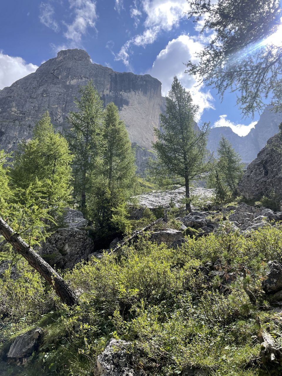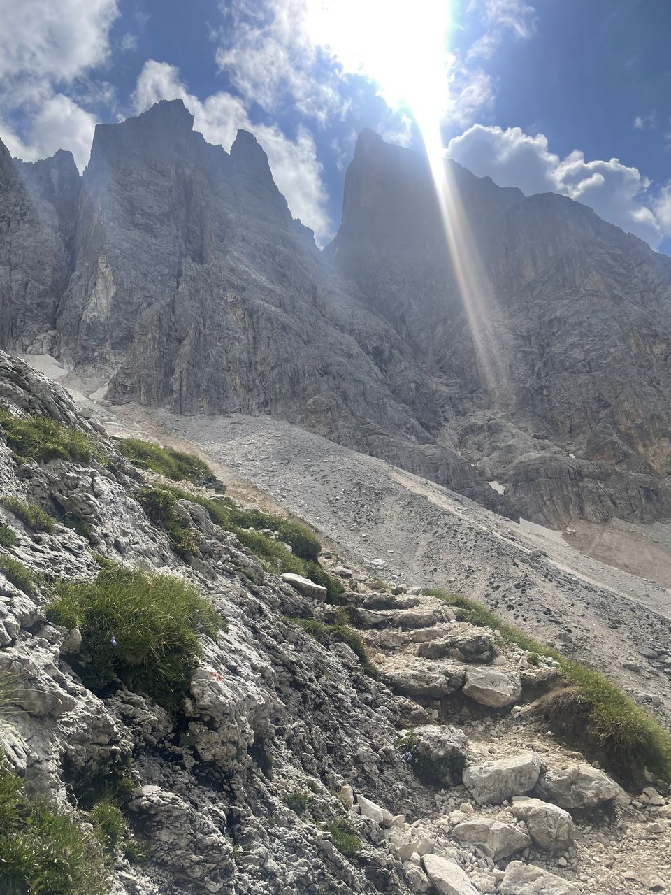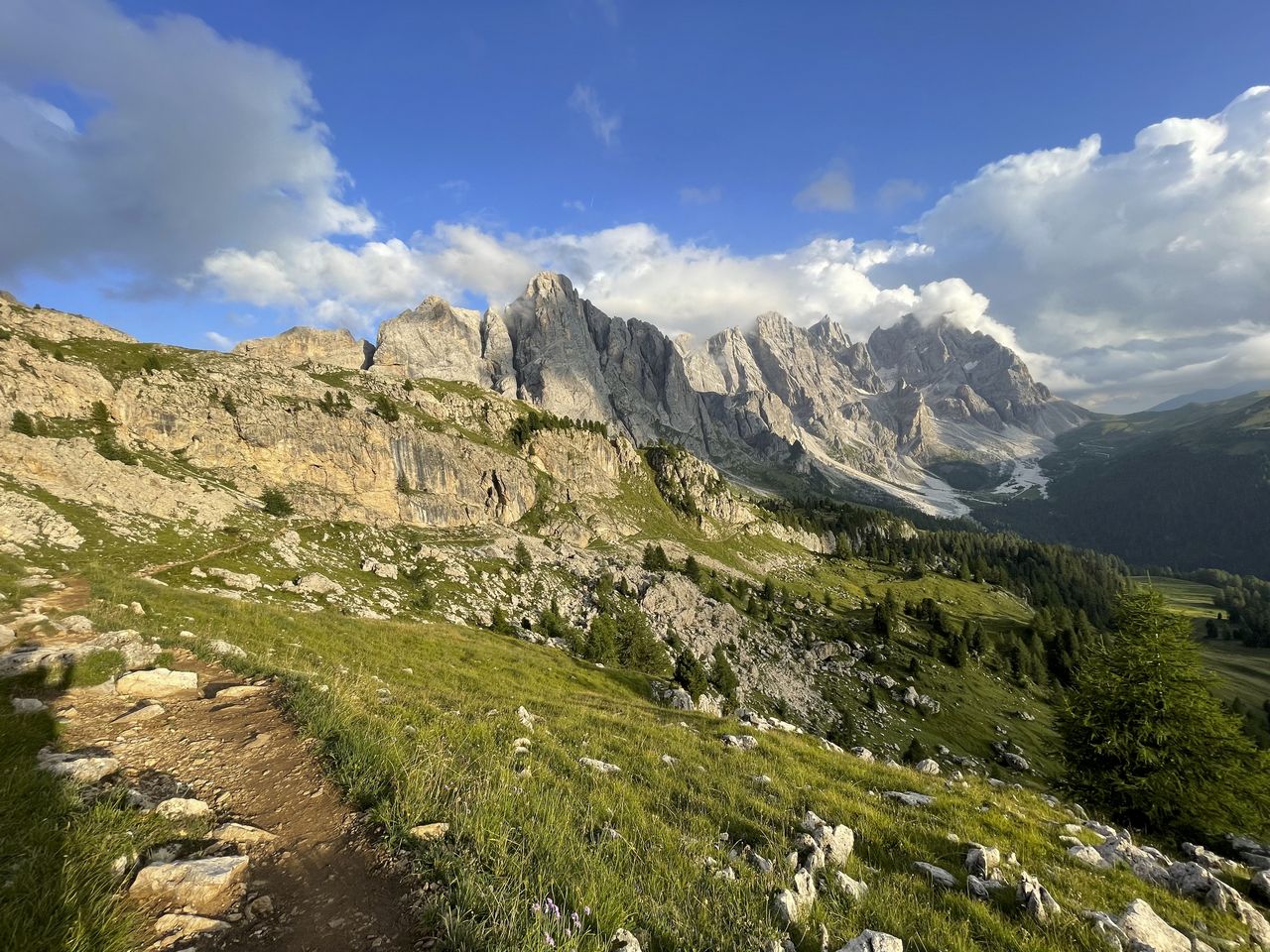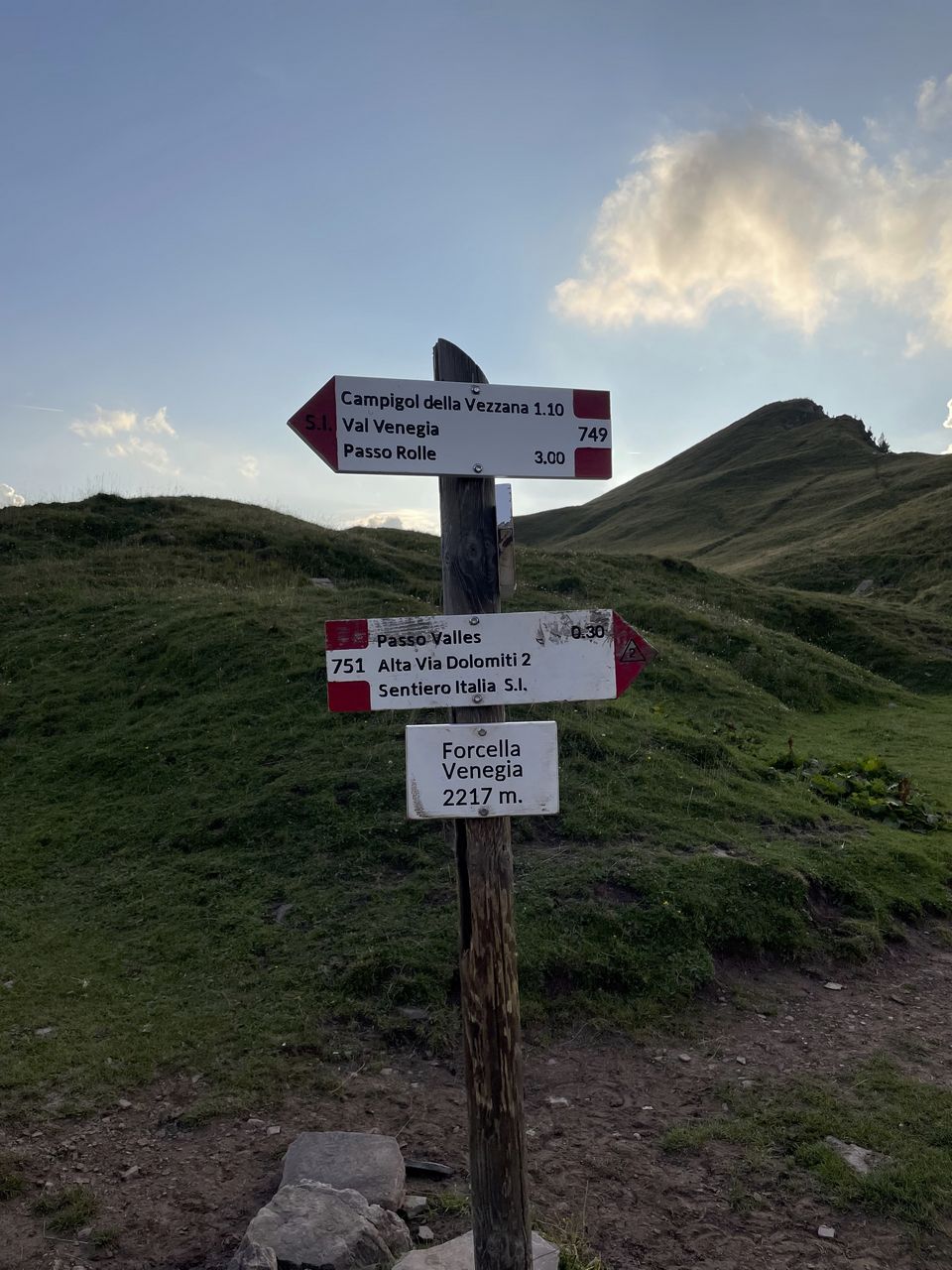 Dal parcheggio di Val Venegia (circa 1770 m) si segue la strada forestale che risale dolcemente la valle in direzione della Malga Venegiota. Superata la malga, il percorso diventa più ripido: si imbocca il sentiero CAI 710 che risale il vallone detritico fino al Passo del Mulaz (2610 m). Il tratto finale richiede passo sicuro e un po’ di allenamento, ma offre viste spettacolari sul Cimon della Pala e sul Focobon. Dal passo si scende brevemente sul versante opposto al panoramico Rifugio Volpi al Mulaz (2571 m), situato ai piedi delle pareti del Mulaz.