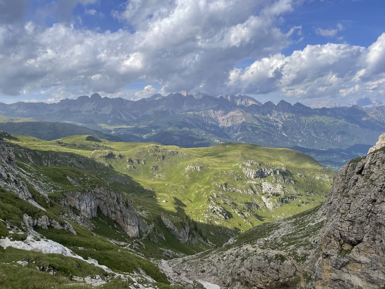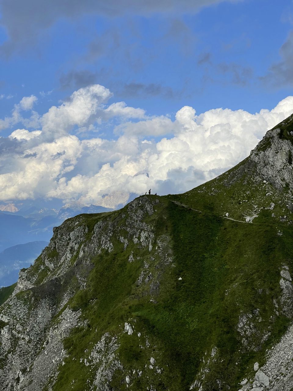 L’escursione, lunga e di ampio respiro, offre panorami grandiosi sulle Pale di San Martino e sui Lagorai.
