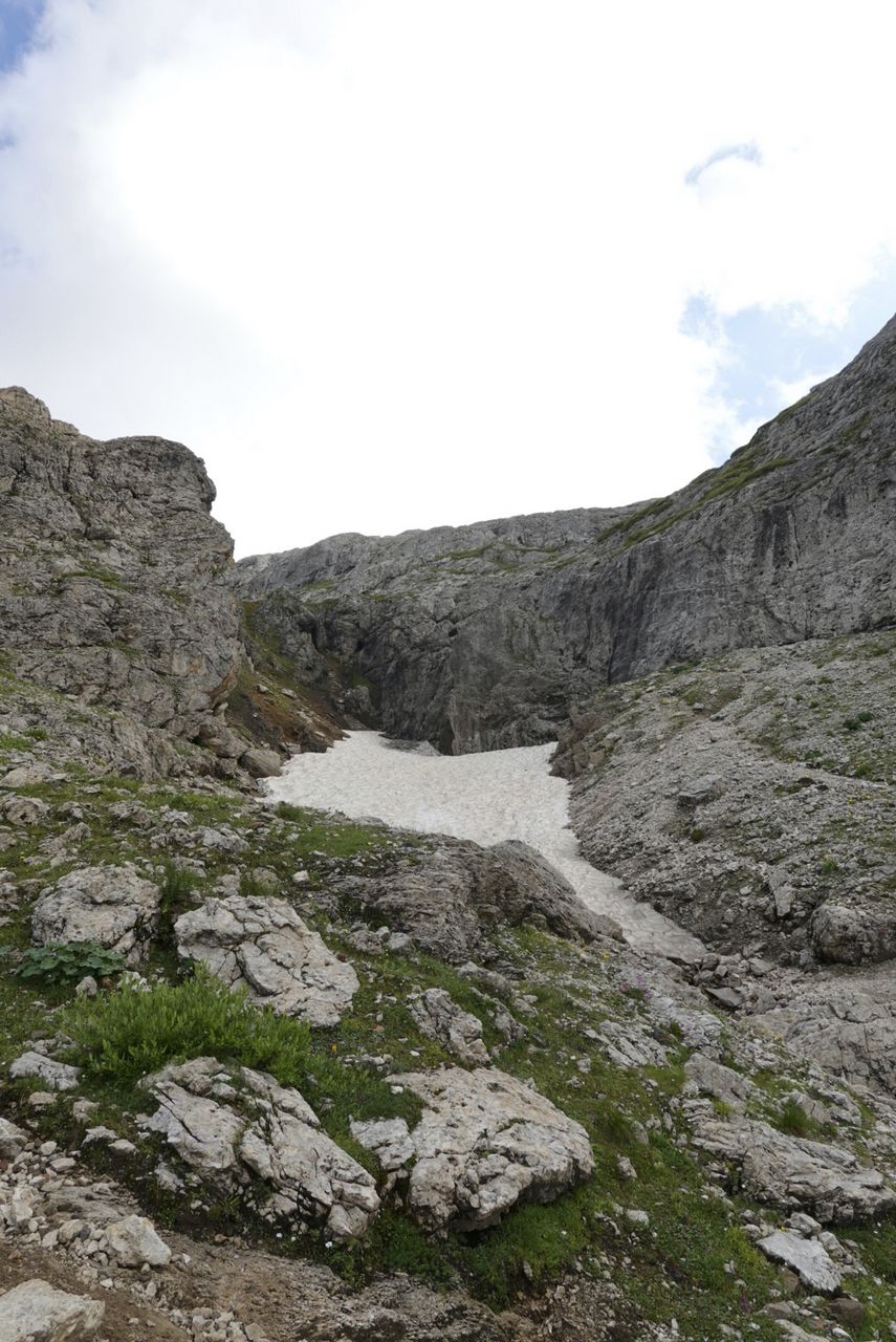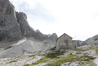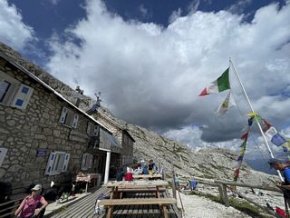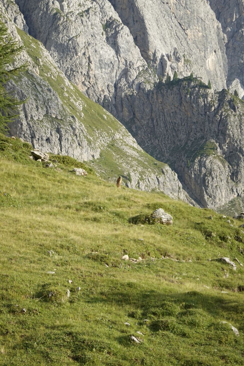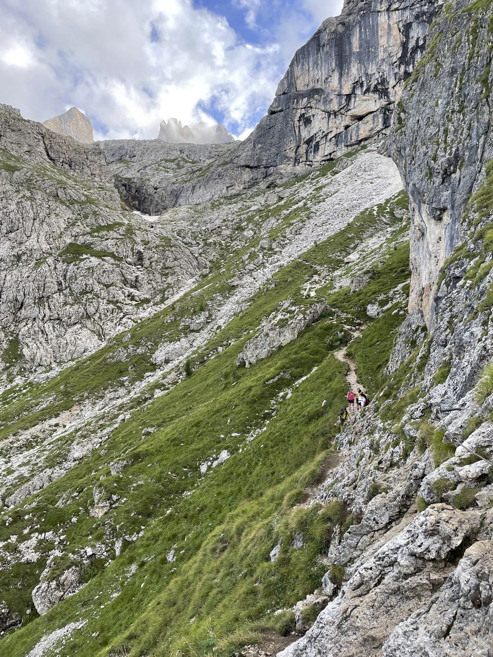 Per il rientro si compie un anello escursionistico: dal rifugio si segue il sentiero 703, che traversa in quota verso ovest toccando il Passo del Fochet del Focobon (circa 2300 m) e poi il Passo Venegiota. Da qui si prosegue verso il piccolo e suggestivo Laghetto di Caladora, incastonato tra pascoli e rocce dolomitiche, e si continua fino alla Forcella Venegia. La discesa finale, su traccia ben segnata, conduce alle spalle della Malga Venegia, da cui in breve si rientra al parcheggio di partenza.