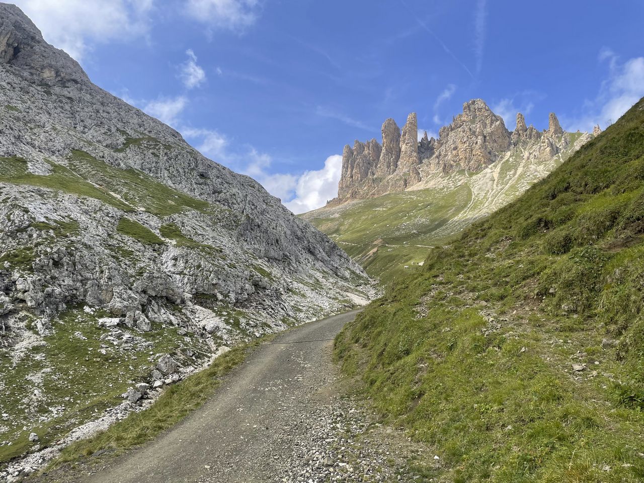 Dal Rifugio Micheluzzi (1850 m), raggiungibile con il servizio navetta da Campitello di Fassa, si imbocca il sentiero CAI 532 che risale la Val Duron in direzione del Passo Duron. Il percorso segue inizialmente la strada sterrata di fondovalle, con pendenza regolare e splendide vedute sulle Cime di Fassa e sul Sassolungo.
